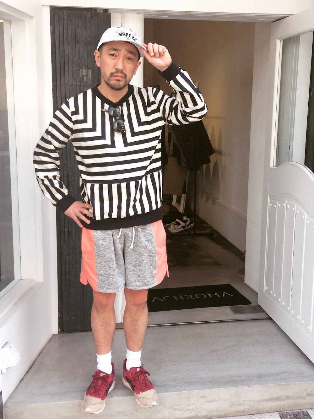 大阪のACHROMAにて、SEDATEの受注会に来ましたよ。 私、7時迄お店にいてはりますので、 大阪のみんな、お待ちしてますねー ACHROMA 06-6538-2304 大阪も暖かく、私は今年初ショーツです。 僕の父親風に表現すると、ルンルンでございます\(^o^)/ SEDATEのスウェットショーツは脇がピンク色の切り返しになってて、素敵な配色になってますよ。 ストライプシャツ:SEDATE 切り返しスウェットショーツ:SEDATE ジェットキャップ:MACKDADDY スニーカー:asics