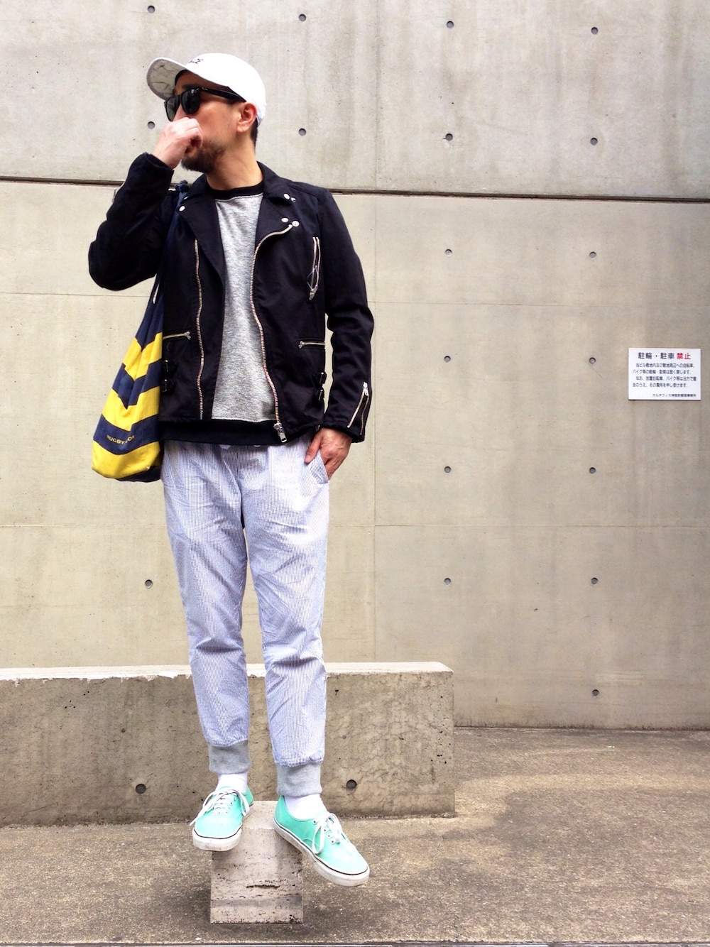 東京、気持ち良い気候です(^^) 早い人はもうゴールデンウイークに 入ってますかね? 本日からアラバキロックフェスも始まり、 本格的なフェスシーズンの始まりですね。 今年もマックダディーは多くのフェスに出店したいと思います\(^o^)/ ボトムはシアサッカーを使用したイージーパンツで、リラックス&クールなアイテムですな。 www.MACKDADDY.jpでチェックしてみて下さい! コットンライダースジャケット:MACKDADDY クルーネックスウェット:SEDATE シアサッカーイージーパンツ:MACKDADDY ジェットキャップ:MACKDADDY スニーカー:VANS サングラス:ray-ban トートバッグ:RUGBY