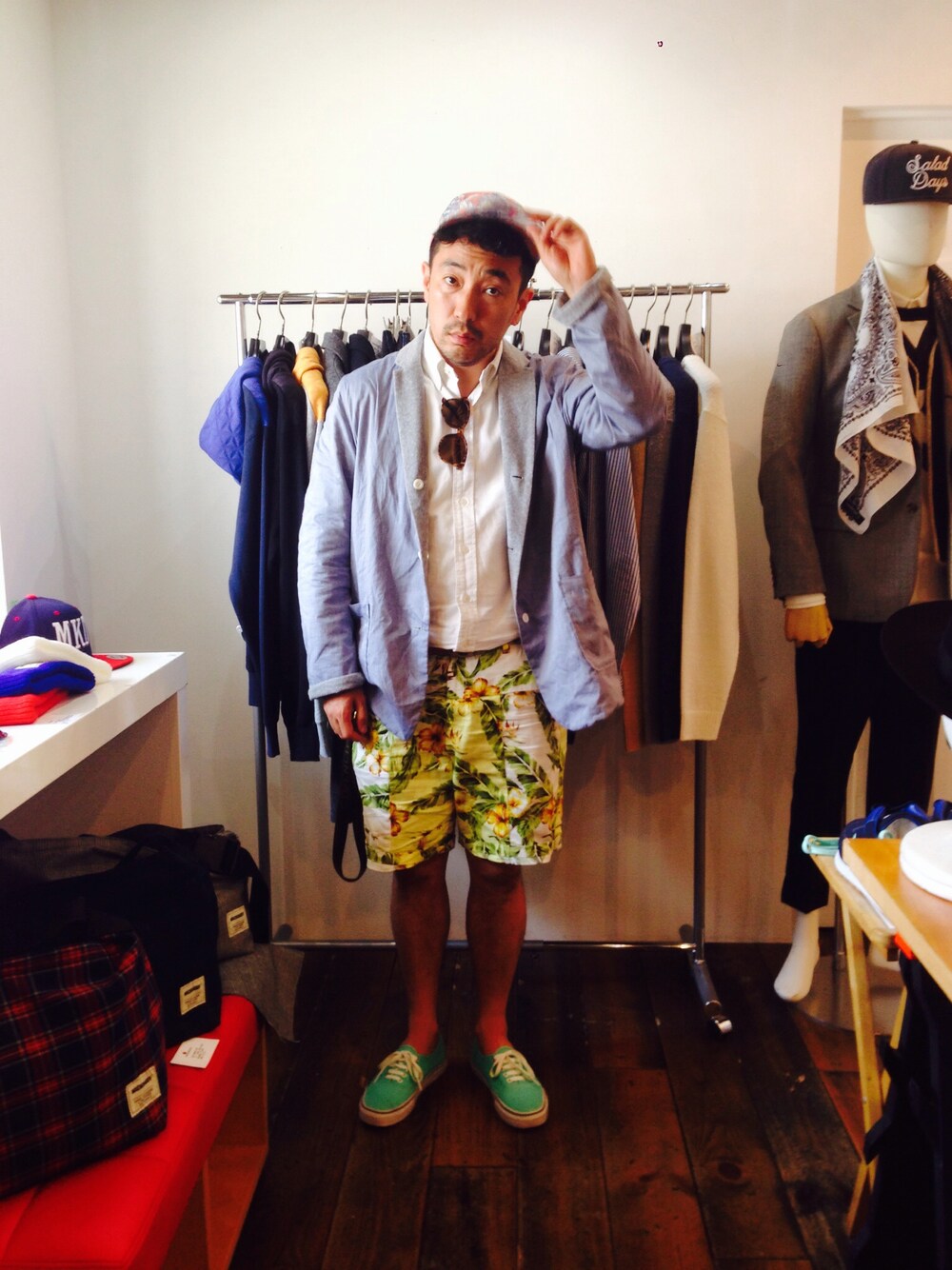 本日の原宿はゲリラ豪雨後、超晴れて来まして絶賛展示会2日目開催中です! 今日みたいな日に、シャンブレーとパイル地を使用したリバーシブルジャケットは、羽織ったり脱いだり便利です。 しかも生地が柔らかいので、型崩れも気になりません☻ リバーシブルジャケット:マックダディー オックスフォードシャツ:ラルフローレン ショートパンツ:マックダディー ジェットキャップ:マックダディー スニーカー:VANS 今週末まで原宿のkitギャラリーで行ってますよ。