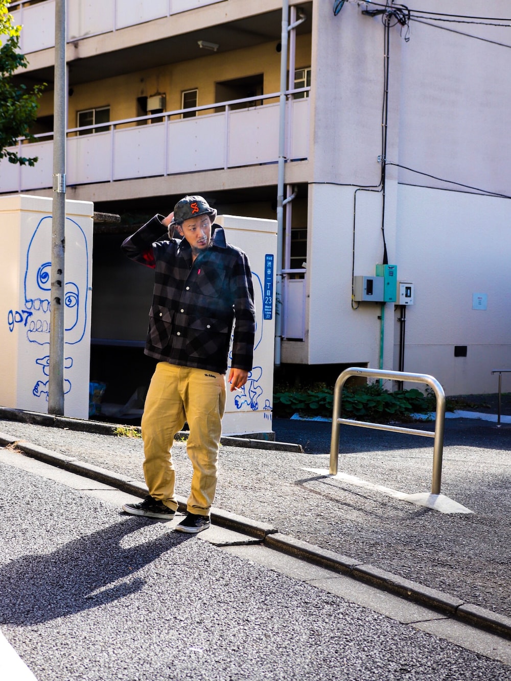 CHECK BDU JKTを軸に組んだストリートコーデ。 右腕部分に別色のCHECK地で腕章の様に縫合されたデザインはタウンユースでも目を惹く事間違いなし。 気品がありながら遊び心の溢れた大人ストリート。