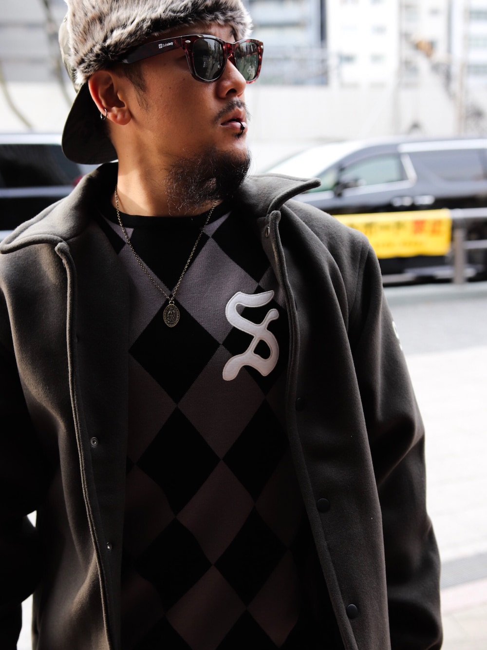 大人ストリートカジュアル。 セーターはジャガード地、コーチジャケットはウールと立体感の際立つコーデはタウンユースでもオススメ。