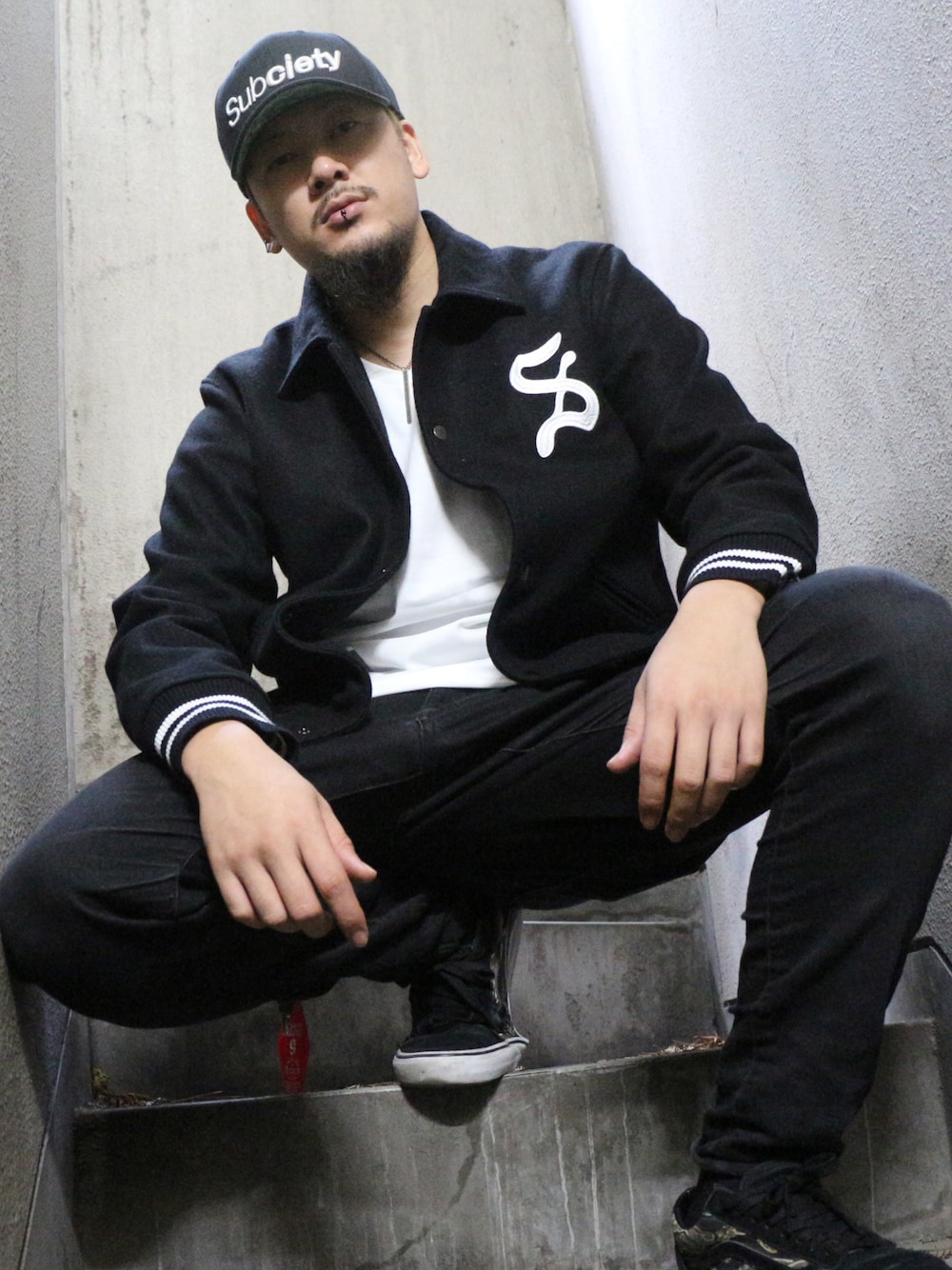 定番モノトーンコーデ。 バーシティージャケットが存在感を放つのでストリート好きにはオススメ。