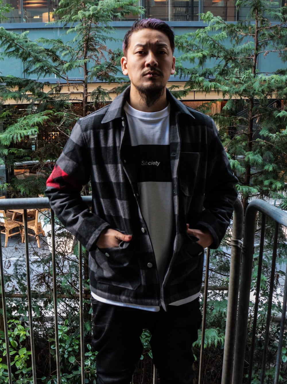チェック柄を取り入れたストリートコーデ。 軍服をモチーフにしたBDUジャケットは間違いなくタウンユースでも目を惹く。
