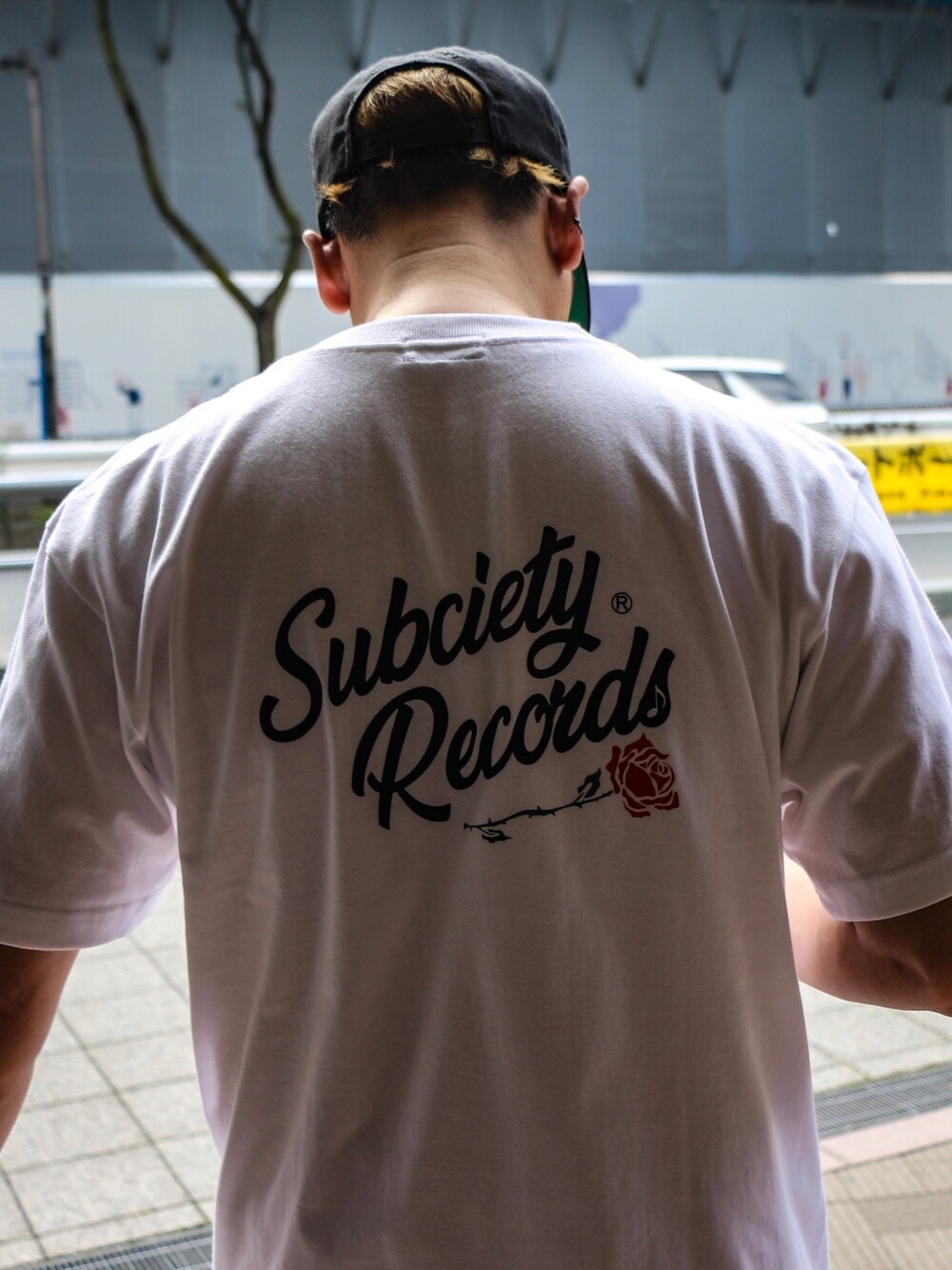 【Subciety(サブサエティ)】 架空のショップユニフォーム -デザイン- Subcietyが運営する架空のレコードショップのユニフォームをイメージ フロントにはブランドネームをチェーンステッチ刺繍で、バックにはショップロゴをプリントで施しました -生地- セミコーマ糸を使用した5.6オンスの天竺を採用 柔らかで肌触りが良いアイテム ラフに着られるボックスシルエット