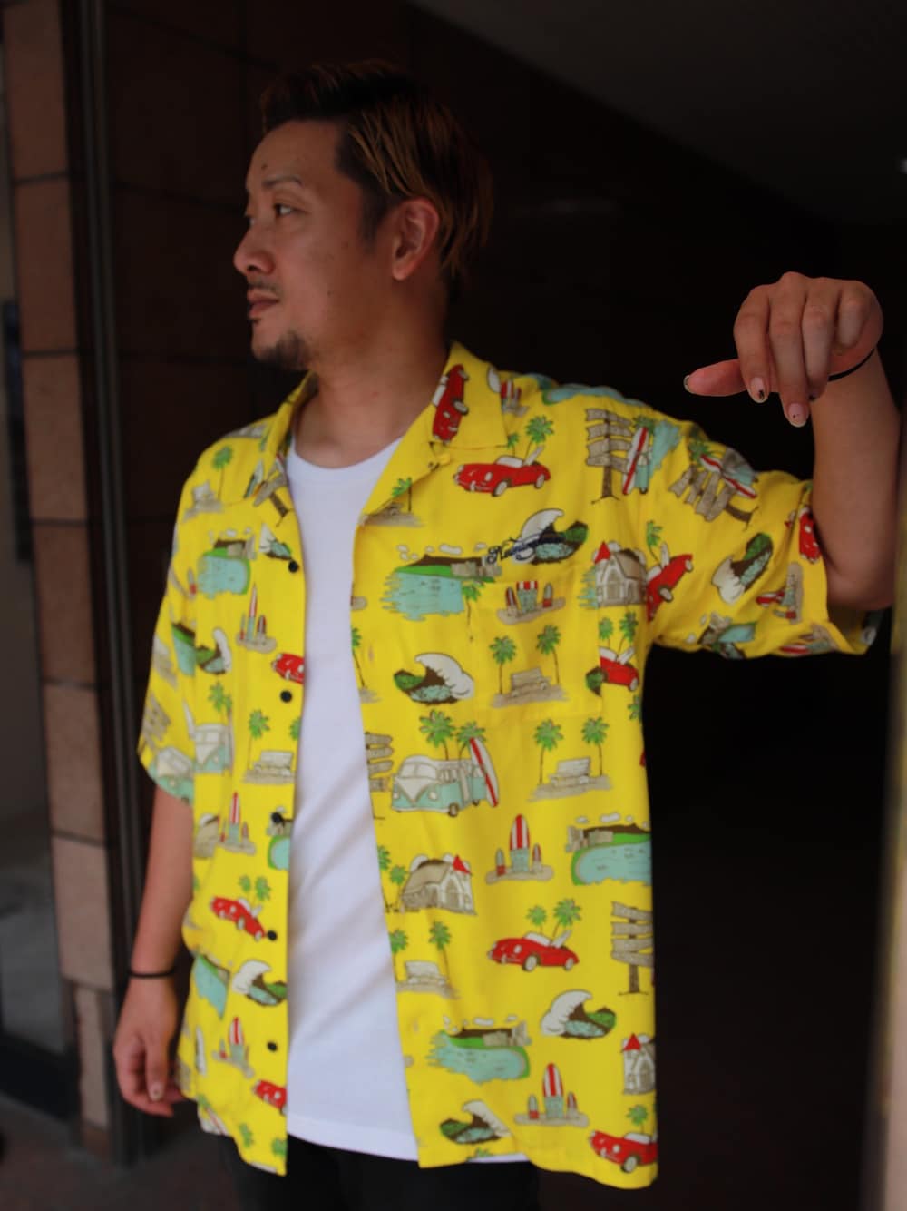【NineMicrophones(ナインマイクロフォンズ)】 お気楽アロハ -デザイン- 非常に柔らかくひんやりとした肌触りが夏に持ってこいなアロハシャツ ゆったりとした身幅と能天気な柄で完全なるお気楽モード。左胸にはブランドロゴである「Comrade」を刺繍 -生地- 風にひらひらなびいて気持ちが良いレーヨン100% NineMicrophones 2019SUMMER COLLECTION ”大人の休日” Kのバックボーンである、スケート、パンク、そしてアメリカンカルチャーの記憶をサンプリングベースに「大人の休日」をテーマにお届けするコレクション サイズ展開-M/L(CM) 着丈-77.5/80.5 肩幅-54/58 身幅-61/64 袖丈-28.5/29