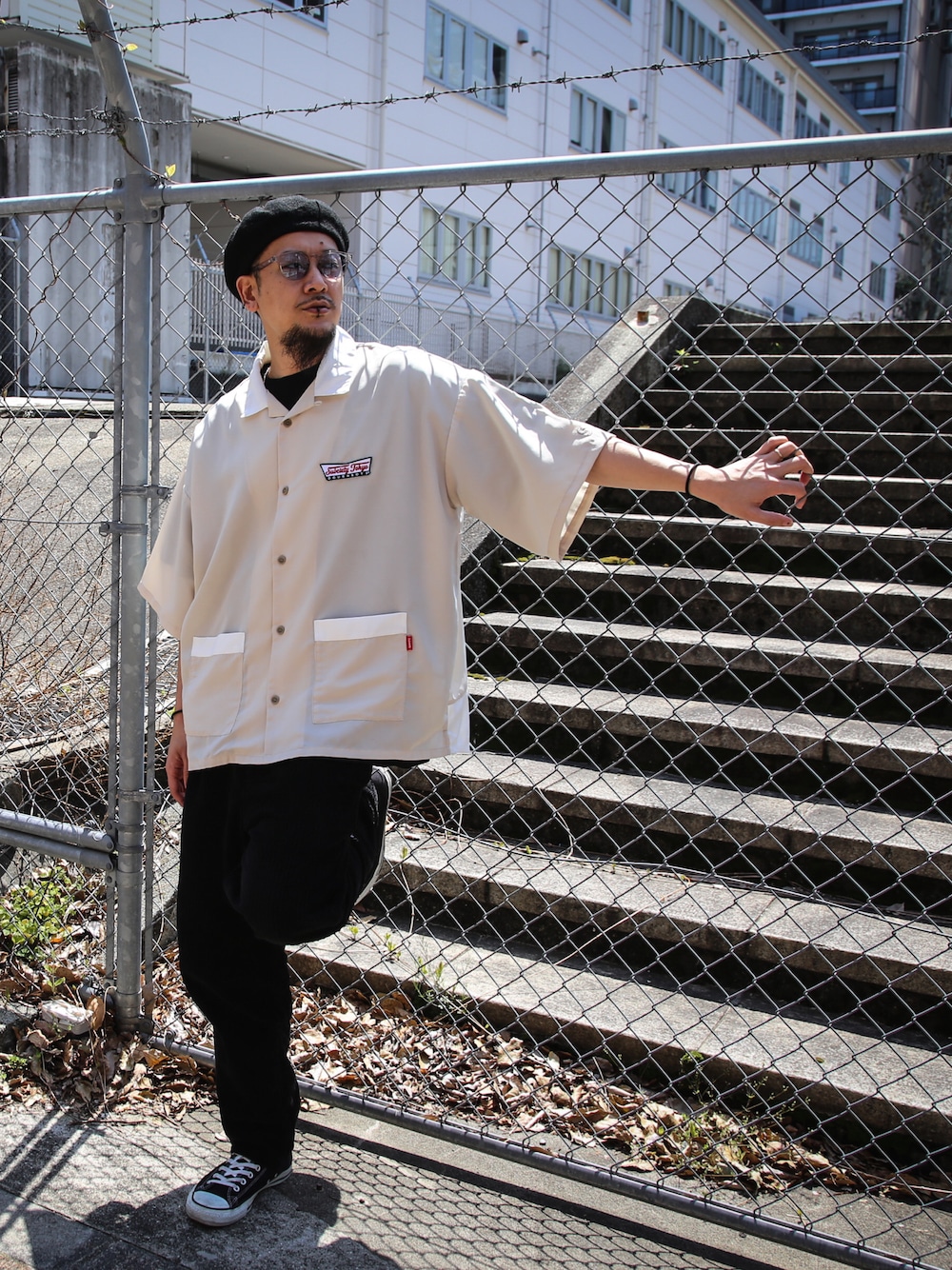 春シーズン定番のドロップショルダーシャツ。 きめ細かな肌触りのピーチファイユ生地を採用。 『DOUGH BOYS=第一次世界大戦の歩兵』が運営するドーナツショップをイメージ。 左胸にはショップロゴのワッペン、左袖にはブランドイニシャルである『S』をドーナツライクに表現した刺繍をオン。 サイズ展開-M/L/XL(CM) 着丈-74/77/80 肩幅-60/63/66 身幅-67/70/73 袖丈-25/26/27 素材- ポリエステル100%
