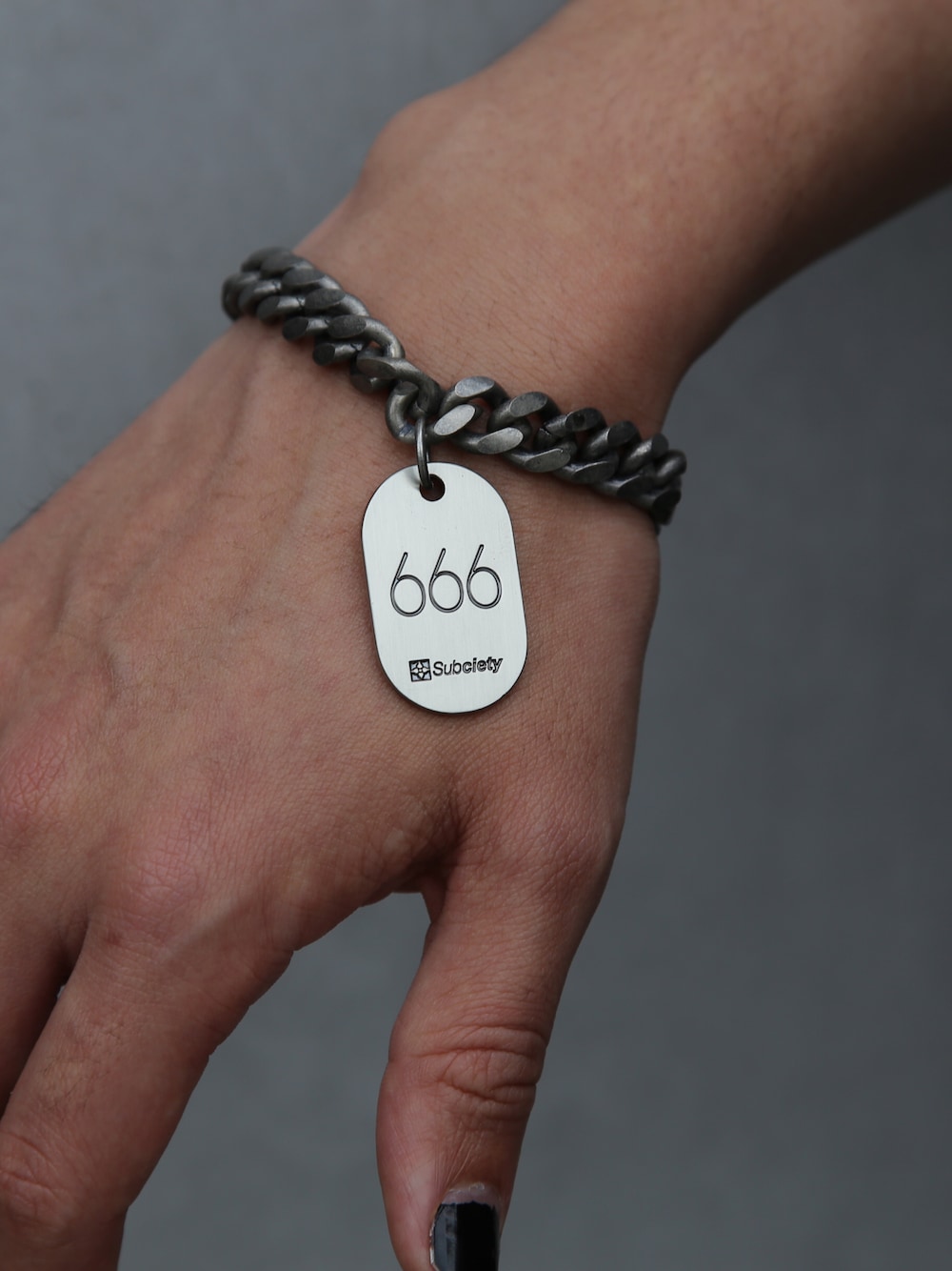 架空のサウナ『NARAKA SAUNA』のロッカーキーをイメージした真鍮製のチェーンブレスレット。 Tバーにはブランドロゴをレーザープリントで施しました。 番号札をイメージしたタグには悪魔の数字である『666』とブランドロゴを刻印で施しました。 サイズ展開-FREE(CM) チェーン幅-1.1 チェーン長さ-20.5 タグ部分3.5×2.1 素材- 真鍮