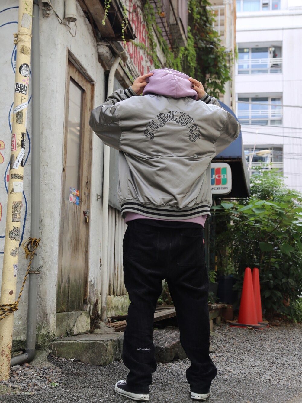 クラシカルなスタジャンのスタイルを継承しつつ、トレンドを取り込んだビッグシルエットに設計。 アームホールにも十分なゆとりがあるため、厚手のパーカーなどの上からも快適に着用いただけます。 ほどよいボリュームの中綿を配備しライトアウターながら防寒性・保温性を確保。 左胸、バックには存在感のあるオールドイングリッシュの刺繍を施しました。 -生地- 表地: 光沢感のあるタフなナイロンを採用 裏地: 滑らかで着脱が快適なポリエステルを採用 サイズ展開-S/M/L/XL(CM) 着丈-69/72/75/78 肩幅-60/62/64/66 身幅-64/67/70/73 袖丈-60/61/62/63 素材- 表地: ナイロン100% 裏地: ポリエステル100%