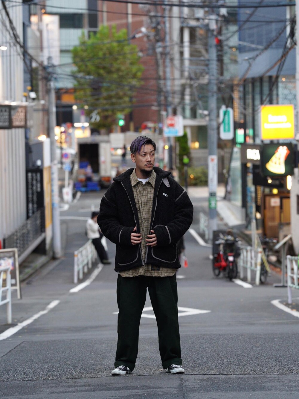 ストリートの雰囲気を醸し出すボアジャケット。 各所にスエード生地でパイピングを施し、ボア素材特有の過度なボリューム感を引き締めスタイリッシュな印象に。 襟を立ててボタンを留めることで首元の防寒を可能にするスロートラッチを襟元に配備。 ペイズリー総柄をプリントした裏地は中綿を入れ、ボア生地との相乗効果で高い防寒性・保温性を発揮します。 左胸にはオリジナルシリコンワッペンをオン。 バックはパイピングと同生地のスエードで切り替え、メインロゴ『THE BASE』を刺繍で施しました。 サイズ展開-M/L/XL(CM) 着丈-69/72/75 肩幅-58/60/62 身幅-58/61/64 袖丈-59/60/61 素材- 表地: ポリエステル100% 裏地: ポリエステル100% 別布: ポリエステル85% , ポリウレタン15%