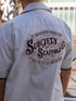 バーバーショップで理容師が着るユニフォームをイメージ。 光沢感のあるブロード生地を採用し、ポケット縁、袖口にパイピングを施しました。 櫛を入れるコームポケットを左ポケットに配備。 左胸、バックには架空のBARBER SHOP『SUBCIETY SCAFFOLD Co.』のサインボードをイメージしたロゴを刺繍で施しました。 クラシカルな雰囲気の一着。 サイズ展開-S/M/L/XL(CM) 着丈-66/69/72/75 肩幅-52/55/58/61 身幅-57/60/63/66 袖丈-19/20/21/22 素材-コットン100%