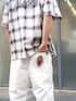 西海岸の雰囲気を漂わせるツイルオンブレーチェックを採用したシャツ。 台襟部分はブランドを象徴するペイズリー柄の生地で切替を施しました。 両胸ポケット、ドロップショルダーシルエット、艶消し猫目ボタンなど西海岸のワークスタイルを演出した一着。 左胸、バックにはブランドロゴを刺繍で施しました。 サイズ展開-M/L/XL(CM) 着丈-70/73/76 肩幅-56/59/62 身幅-66/69/72 袖丈-22/23/24 素材- 綿100%