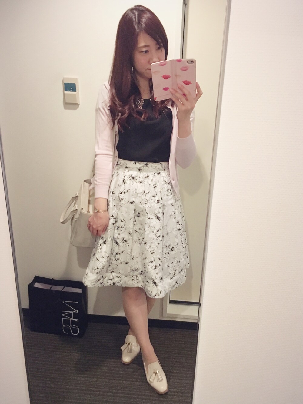 リバーシブルスカート優秀! 表はカーキ、裏はモノトーン花柄。 使えます。 超かわいいスタンスミス買ったから早く履きたい〜♡