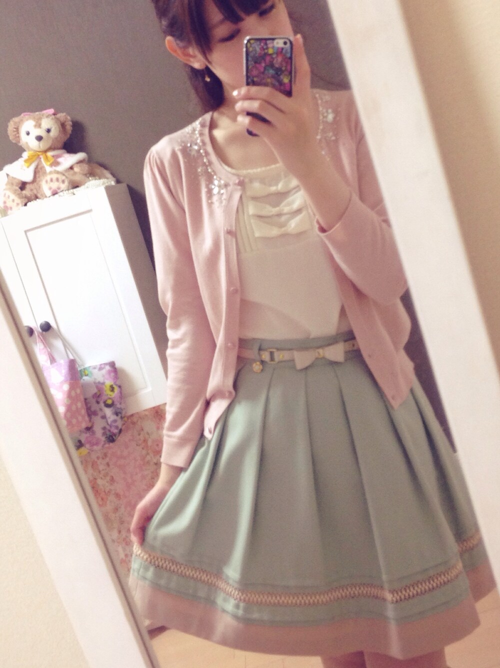 春になると、グリーン×ピンクの組み合わせが着たくなります(⁎˃ᴗ˂⁎) お花見だんごカラー…笑