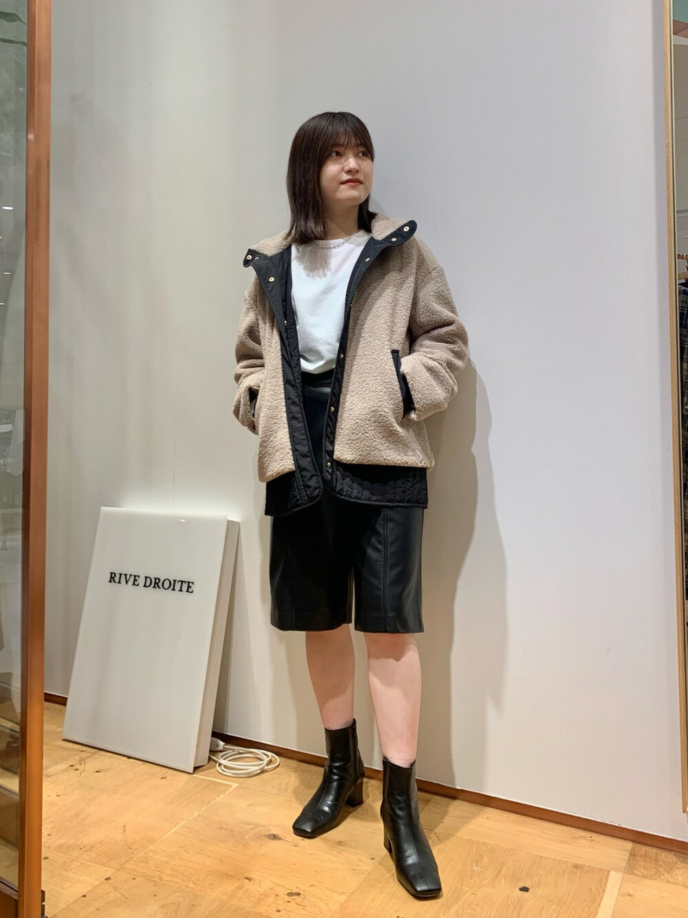 ボアジャケットはもこもこで着心地最高です☺️ レザーのハーフパンツでカジュアルコーデにしました
