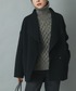 ブラウンのジャガーニットがポイントのハンサムコーデです ニット以外のアイテムをブラックで統一させることでモードな雰囲気に☕️ コートは大きめの襟なので小顔効果にも繋がります◎