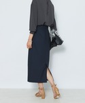 甘めブラウスとタイトスカートを合わせたキレイめスタイルです。 スカートを暗めのトーンにすると大人の女性らしい雰囲気になります。 足元はヒールサンダルにすることですっきりとした印象に。