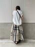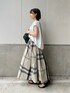 WEB限定スカートを使った大人の休日コーデです! スカートの柄は大ぶりなのでフレンチスリーブのトップスですっきり見せを意識しました🤍