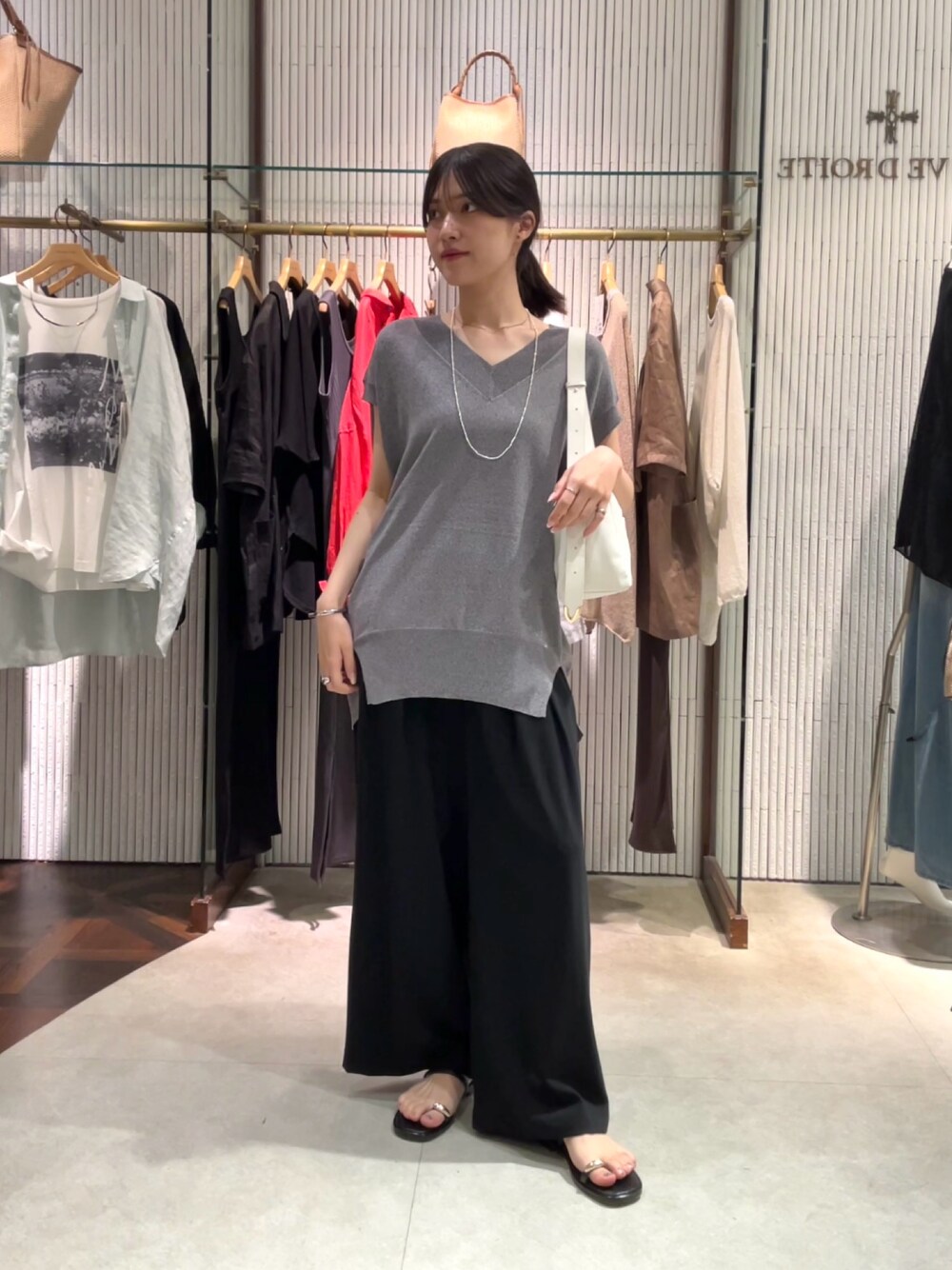 miu(RIVE DROITE 恵比寿アトレ)のニット/セーター「【ひんやりタッチ・セットアップ対応可】レーヨン混バックテールニット」を使ったコーディネート