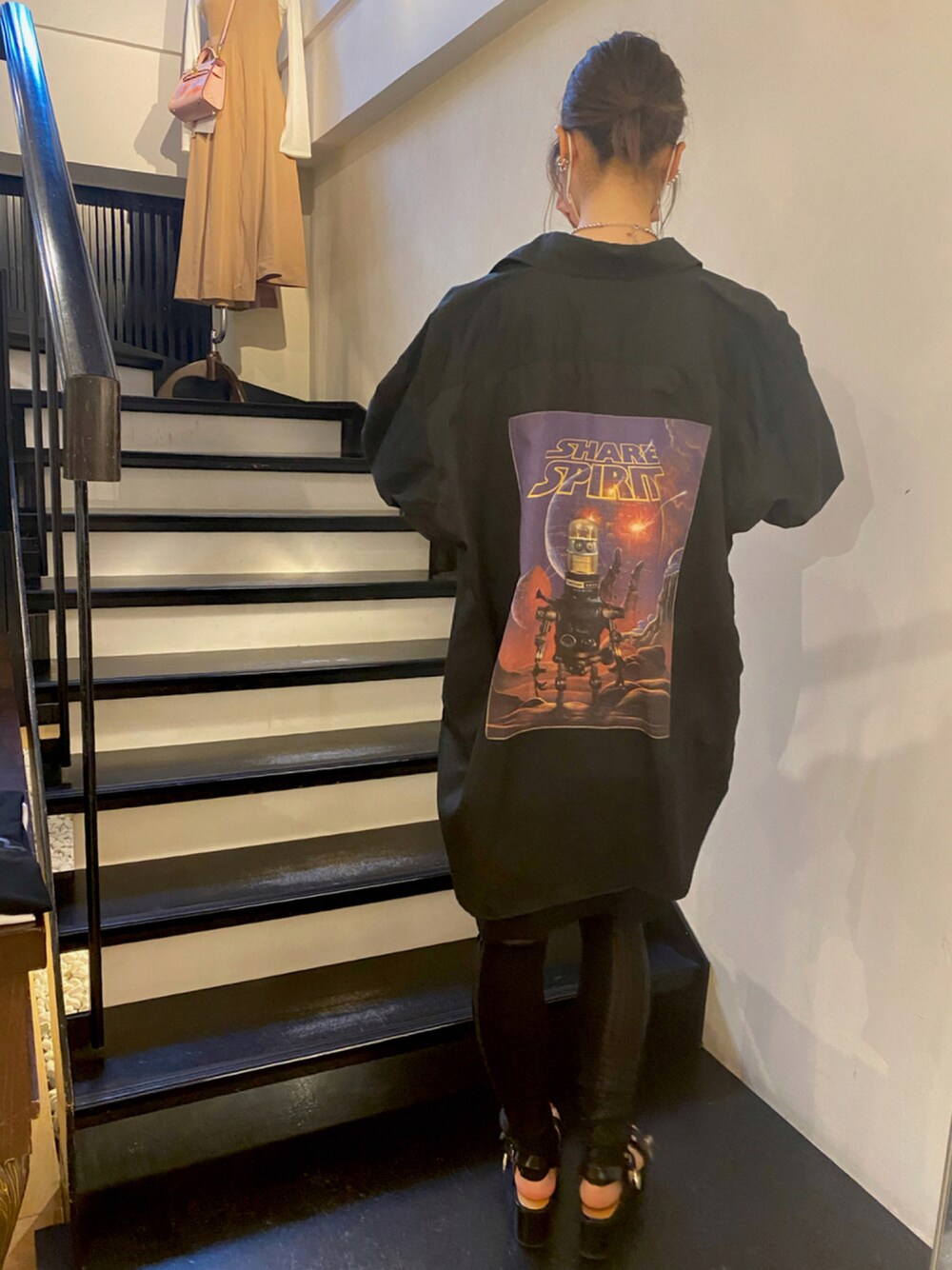 🧥:SHARE SPIRIT 🎽:SHARE SPIRIT 👖:KMRii ボタンの開閉でシャツとしてもジャケットとしてもお使い頂けます︎︎☺︎ 近未来的なバックプリントが可愛いです🤖