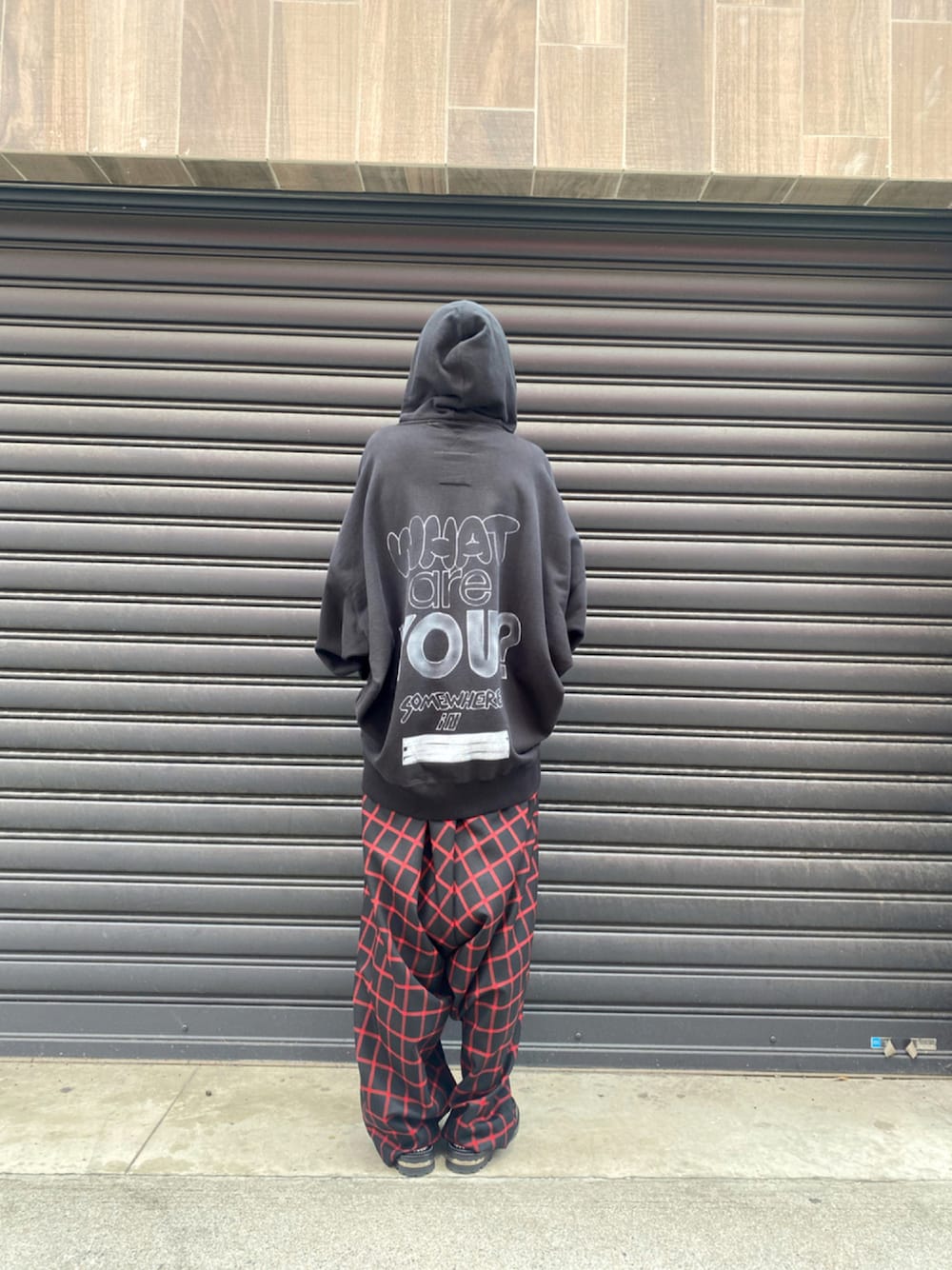 👕:Maison MIHARAYASUHIRO 👖:Maison MIHARAYASUHIRO 落書き風インクペイントのビッグフーディー☺︎ 黒は日焼け加工、白は汚し加工が施されています✏ オーバーサルエルパンツは黒、赤チェック、緑チェックと秋冬にピッタリのカラー揃いです🖤❤️💚