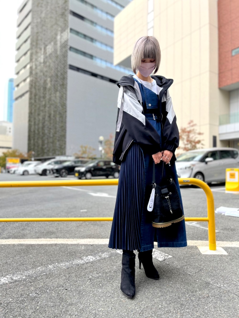 🥼:AULAAILA 👕: RequaL 👗:AULAAILA 👜:okeru ⛓: JUSTINE CLENQUET 動きでサイドプリーツが靡くのが素敵🍃 肩紐で長さの調節も可能です👌 そしてウエストマークでスタイルアップ🔥