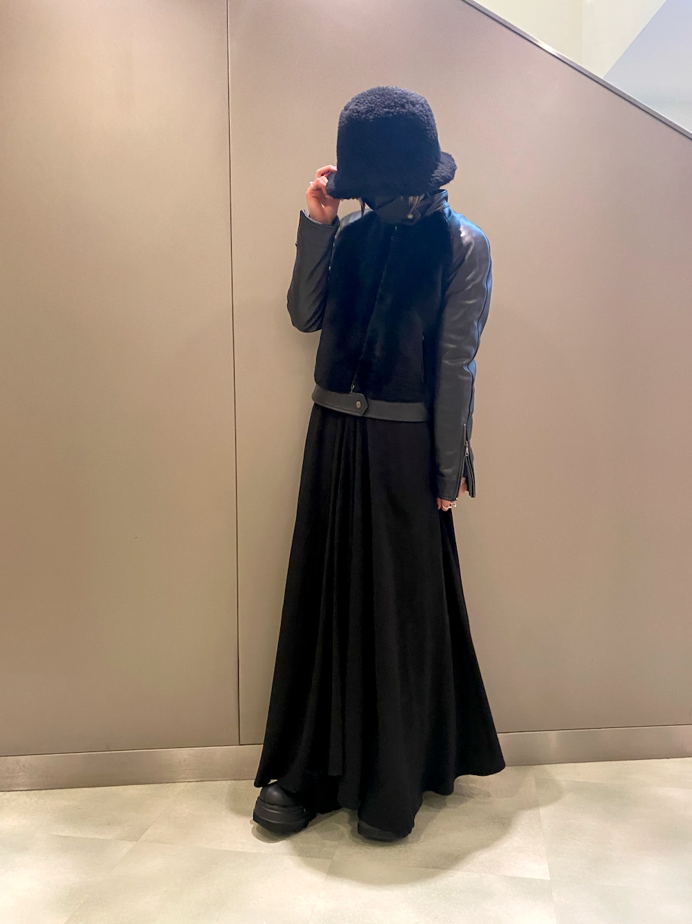 🎩: Ballet by BACKLASH 🧥: EMMETI EMMETIのラムレザー🐏 大人のブラックコーデ🖤