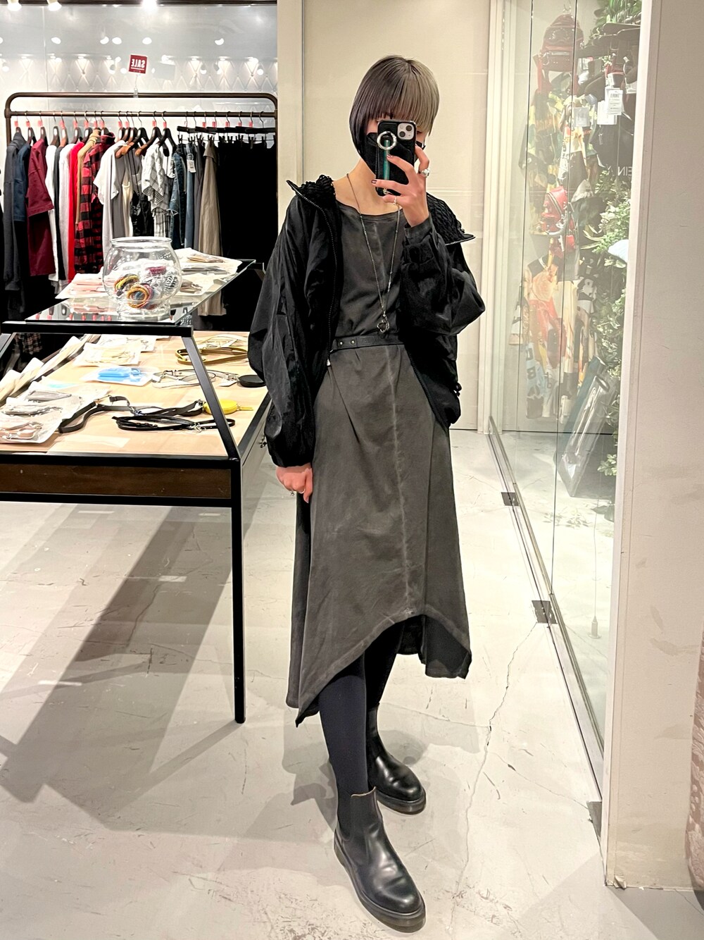 📱:ajew ⛓:gunda 🪢:14th addition 🥼:AULAAILA 👗:KMRii KMRiiでは珍しいロングスリーブワンピース☺︎