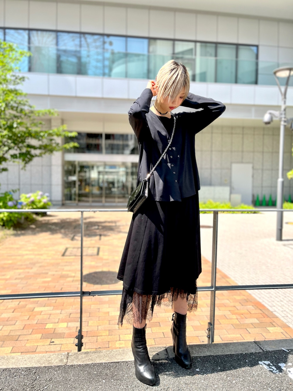 onepiece&skirt&cardigan:ADDICTNOIR bag:Maison Margiela 黒でも涼しい🖤⋆͛*͛ ⬇️Instagram⬇️ https://www.instagram.com/royalflash_umeda