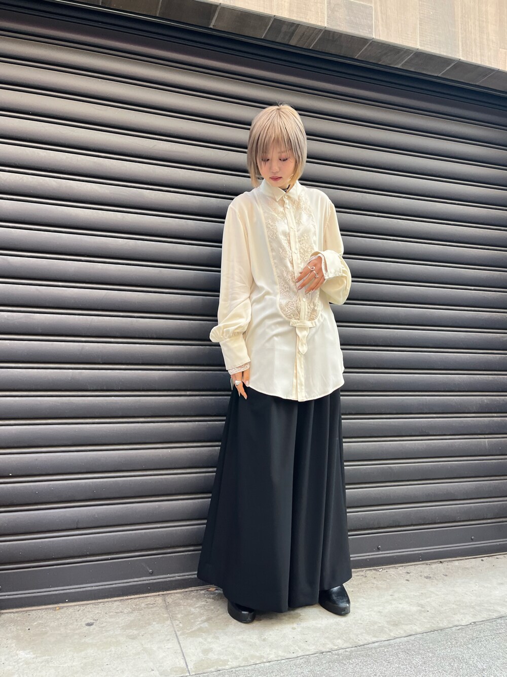 👕:SHARE SPIRIT 👖:LAD MUSICIAN 手元のレース お気に入りポイント🫧🤍 ⬇️Instagram⬇️ https://www.instagram.com/royalflash_umeda