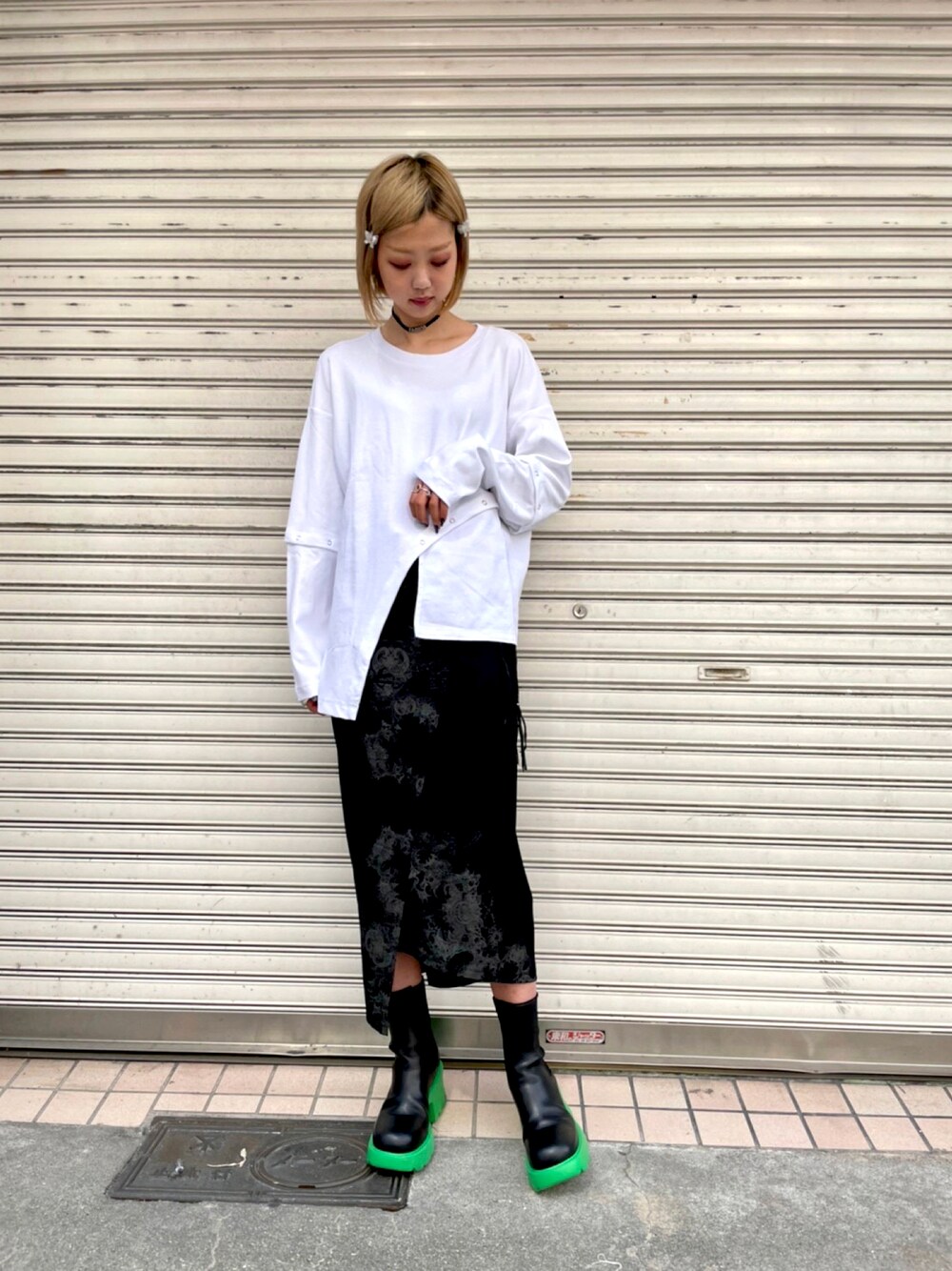 ミカ(ROYAL FLASH 梅田店)のスカート「KMRii/ケムリ/別注MAGNOLIA FLOWER SKIRT」を使ったコーディネート
