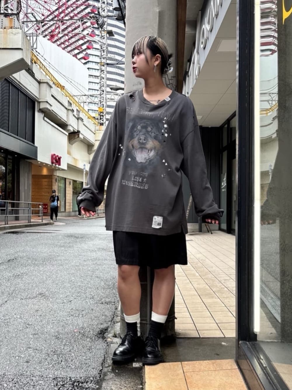 ミカ(ROYAL FLASH 梅田店)のTシャツ/カットソー「Dog Printed Embellished Distressed Long Sleeve T-shirt」を使ったコーディネート