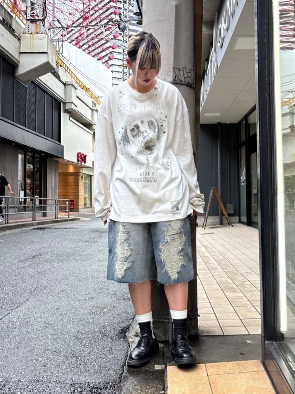 ミカ(ROYAL FLASH 梅田店)のTシャツ/カットソー「Dog Printed Embellished Distressed Long Sleeve T-shirt」を使ったコーディネート