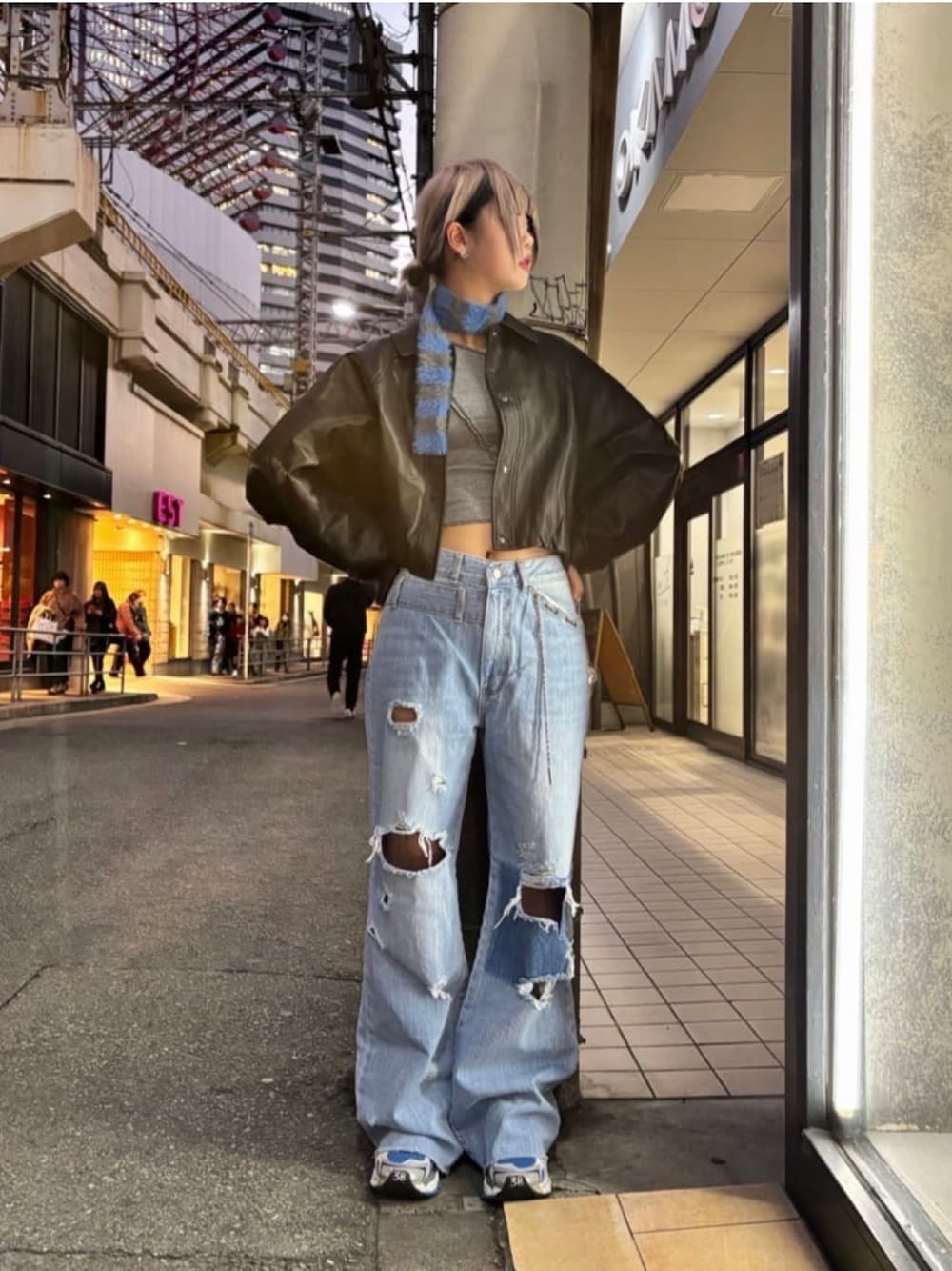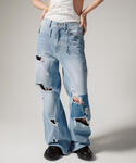 ミカ(ROYAL FLASH 梅田店)のデニムパンツ「MITSUKI/ミツキ/クラッシュワイドデニムパンツ」を使ったコーディネート