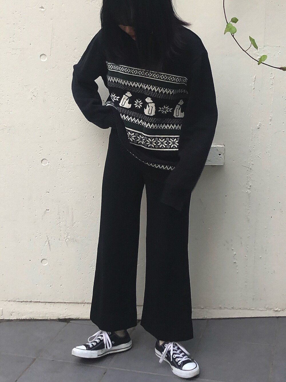 ブラック系のニット/セーター、ブラック系のスニーカーを着用したレディースの冬コーディネートの1枚目の写真