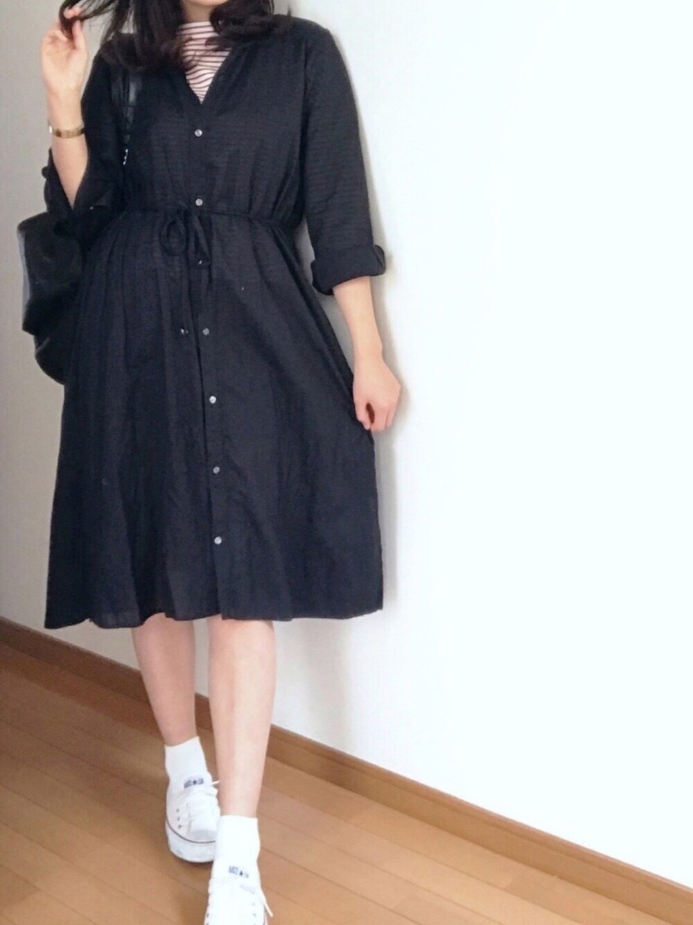 21 / 16 シャツワンピから ボーダートップスを ちらっ。