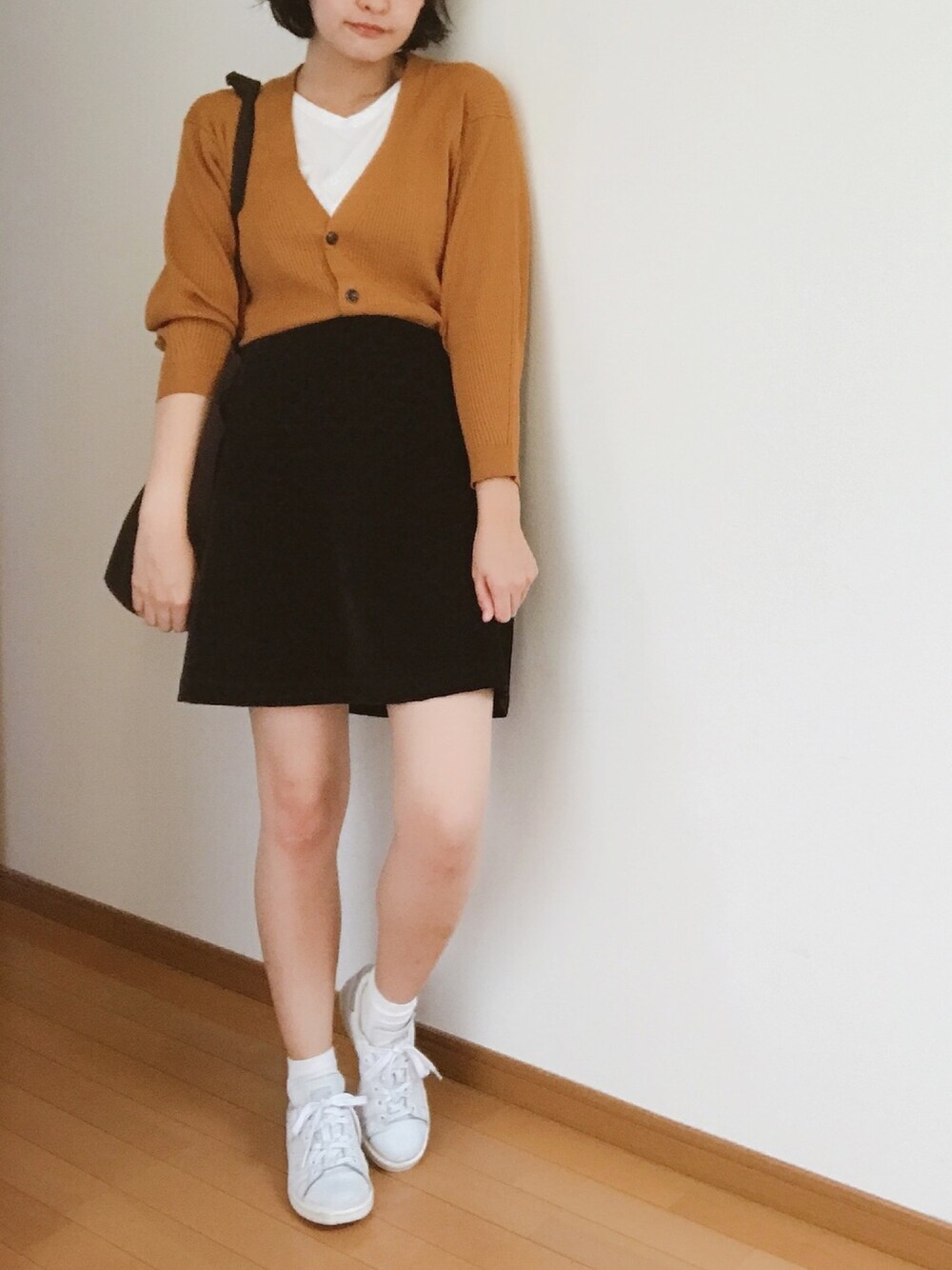 . 今年は色んな可愛い形のカーディガン出てますね このスカート、カットワーク加工とスエードっぽい手触りが気に入ってます