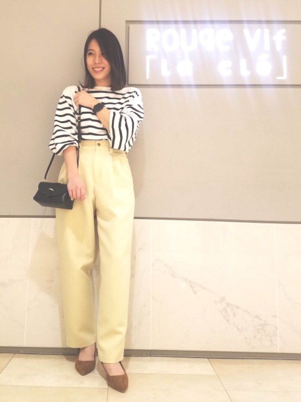 前回投稿記事で使用した ニットのバリエーションコーデ♪ トレンドのカラーパンツとのバランスがとても好み! ボーダーニットは生地と程よいゆとり感で カットソーとは一味違った印象に⭐︎ これはぜひ袖を通してみて欲しい! 柔らかい生地感に感動します!