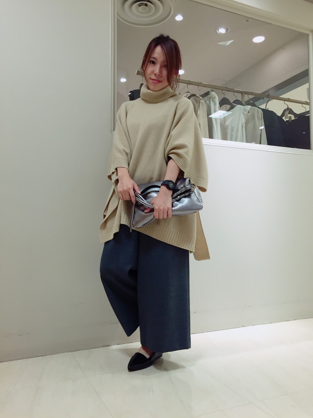 今年トレンドのポンチョを お気に入りのワイドパンツと 合わせてみました! 秋らしいベージュカラーで 女性らしくまとまったコーディネートです。 低身長の私でもバランス良く着れました! タートルネックなので シャツ合わせなんかも取り入れて たくさん使いたいです☆