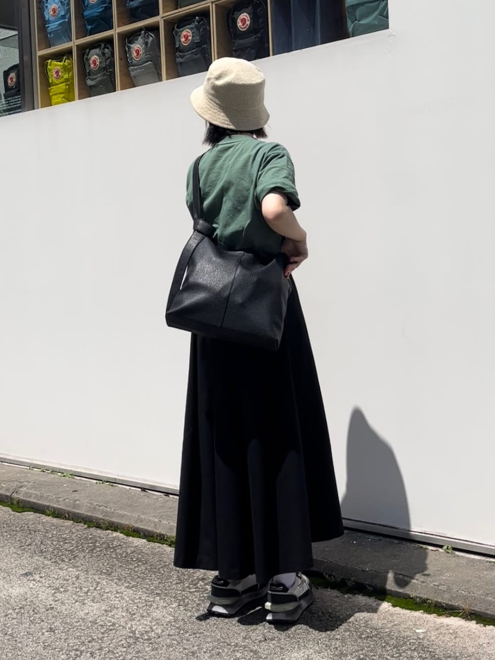 日差しがすごいので今年帽子デビュー⭐︎ ナナメガケバッグとゆとりあるロングスカートで動きやすい格好に。