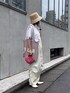 ホワイトコーデにピンクを差し色。 シンプルなかたちのトートバッグはA4も入って使いやすい◎
