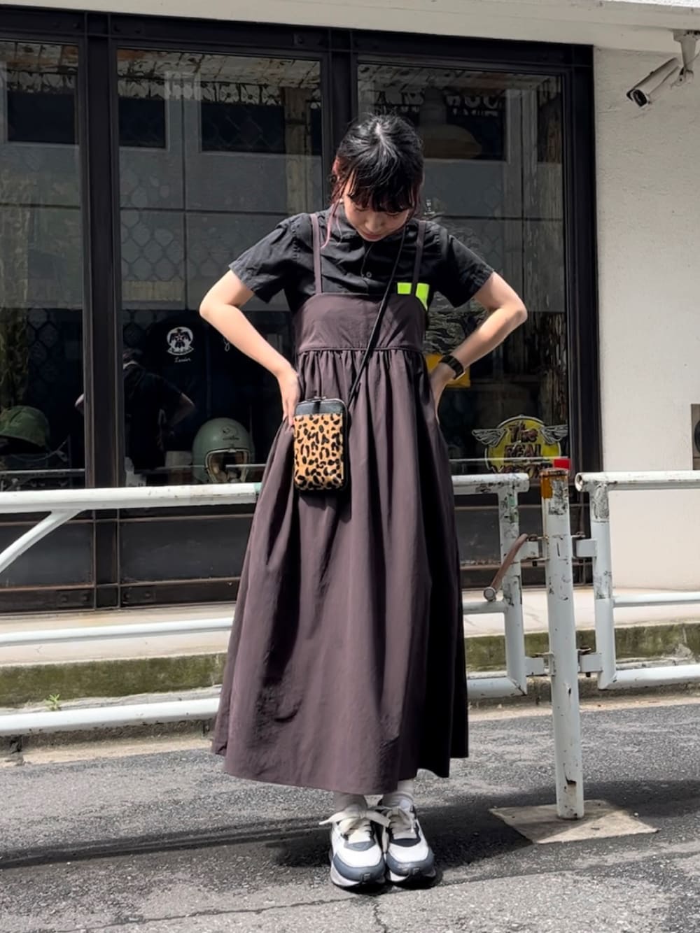 n m k( BIRTHDAY BAR 本部)のショルダーバッグ「スマホショルダー アニマルコンビ」を使ったコーディネート