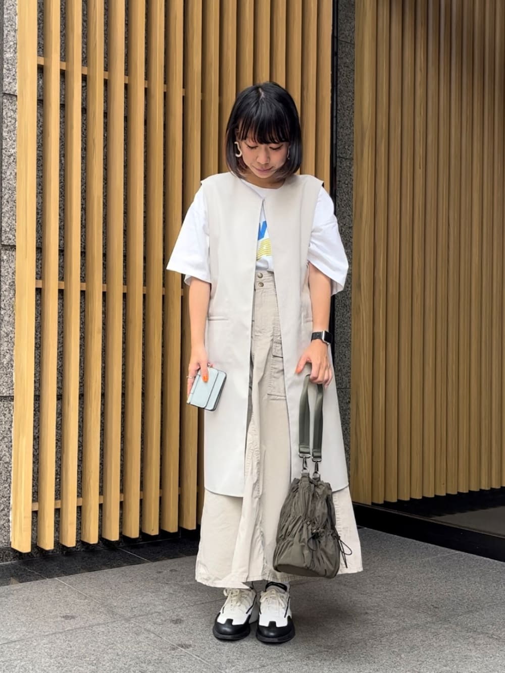 n m k( BIRTHDAY BAR 本部)のトートバッグ「ナイロンシャーリング 巾着バッグ」を使ったコーディネート