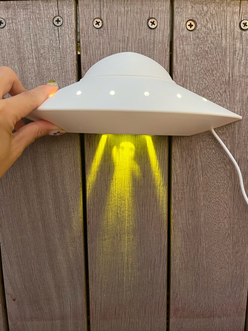 宇宙人が現れるおもしろいライト◎ 本体もUFOの形で、リアリティを表現しました!