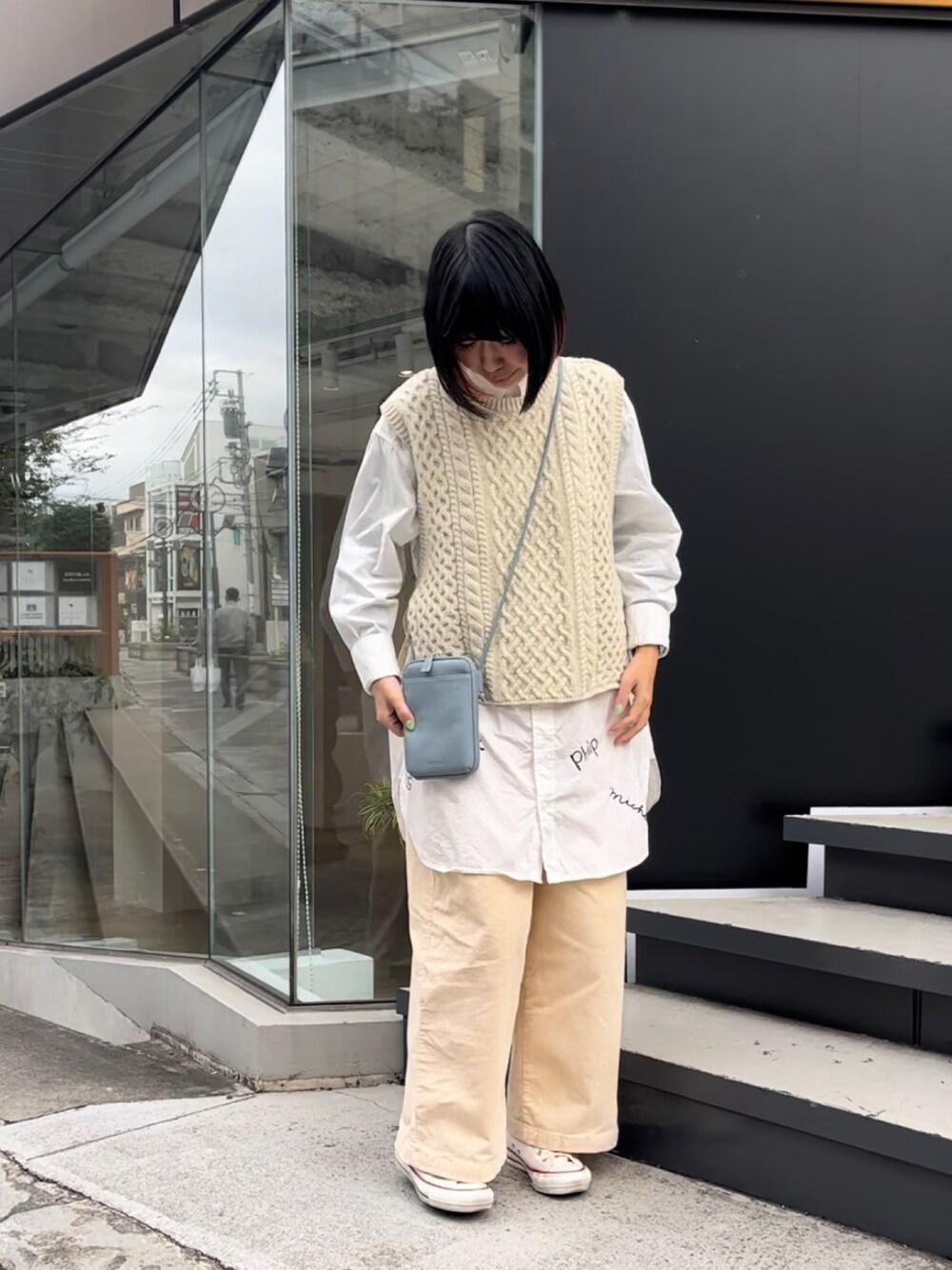 今日はホワイトコーデなので映えそうな水色のスマホショルダーをチョイス◎ お財布機能も兼ね備えているので、これ一つでお出かけできます◎