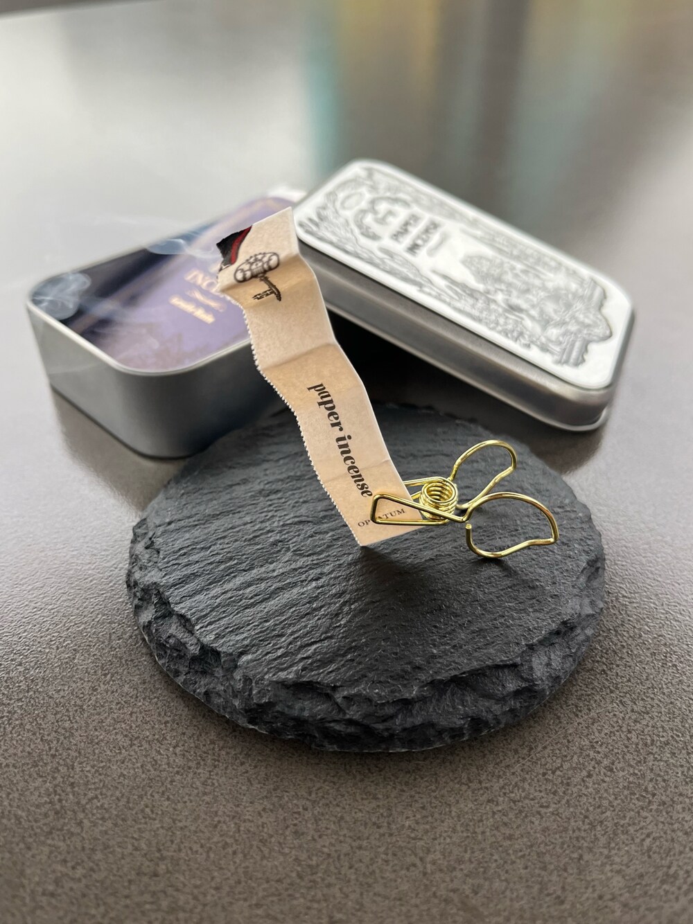 ペーパーインセンスという紙のお香。 気軽に香りを楽しめるとっておきのアイテムです◎ ①そのまま楽しむ 本やお財布に挟めば、あけたときにふわっと良い香りが広がります ②火をつけて香りを楽しむ 火をつけてすぐに消します。紙が燃えて、煙と共に良い香りが部屋に漂います もう缶を開けた時からすごい良い香りが! 私はムスクのウッディな香りのGentle Rainが一番好きです◎