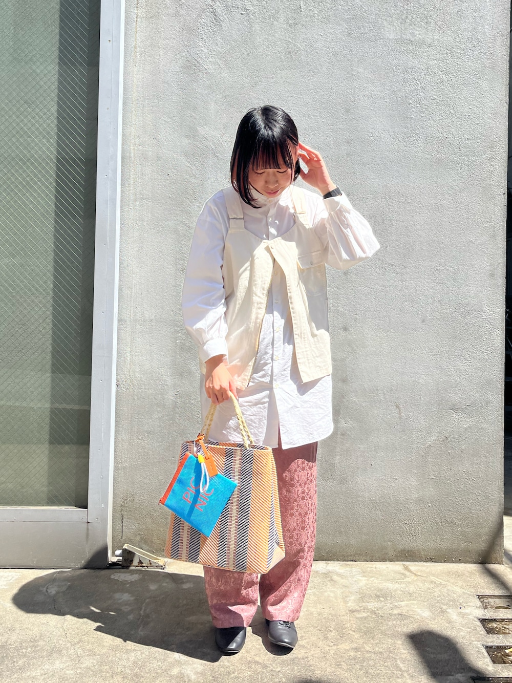 夏にヘビーユーズしたい、ラフィア風のトートバッグ。 ラフィア風なので、毛羽立つこともなく、持ちやすい。 A4サイズ対応です◎ 新作のポーチをつけてみました。 ポーチはカラビナがついているので、こういった感じでバッグに取り付けることも可能です◎
