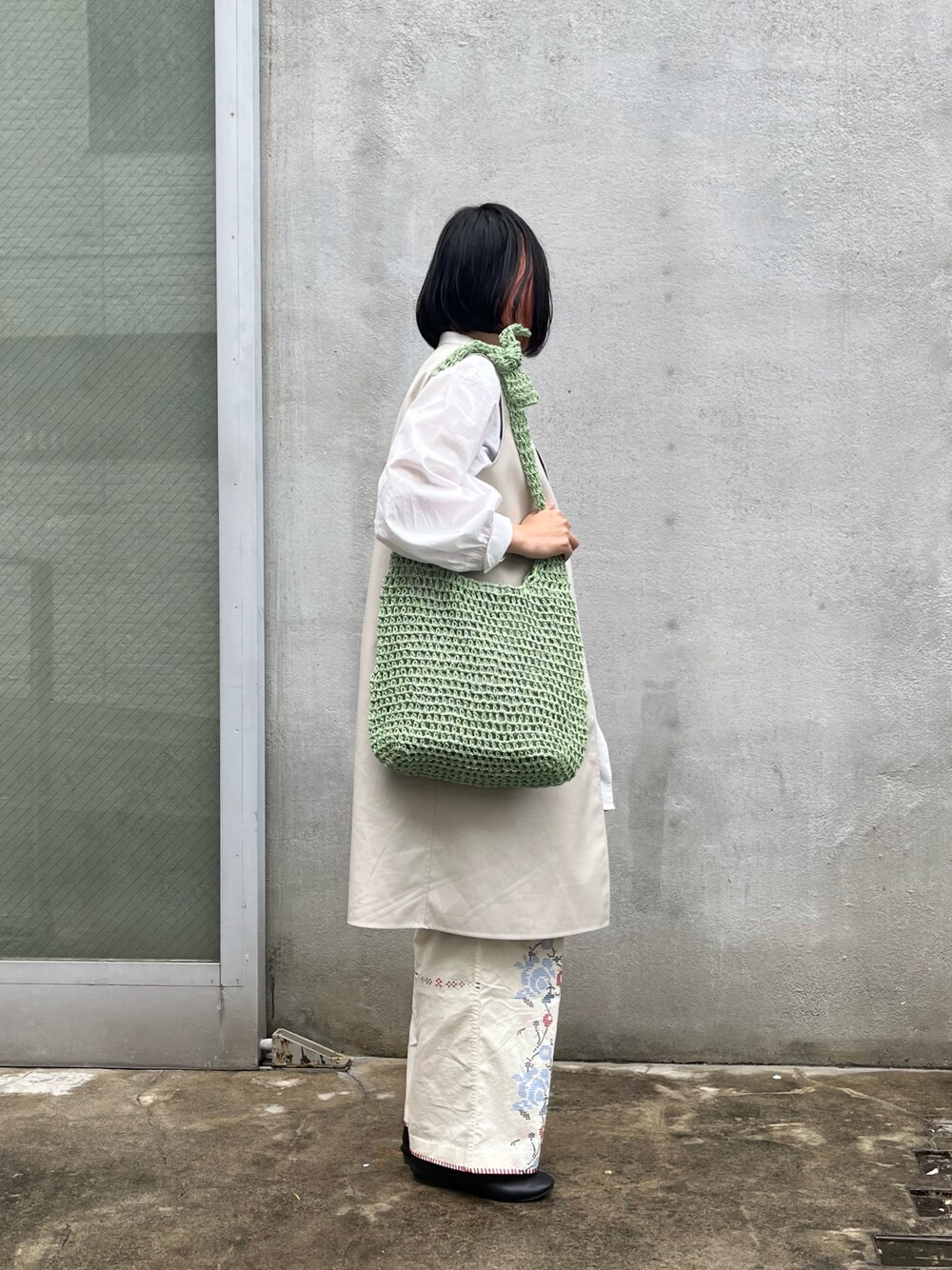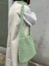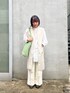 夏らしいペーパー素材のバッグ◎ メッシュデザインですが裏地がついているので中身が見える心配はありません。 ショルダー部分を結んで、長さ調節可能◎ ホワイトコーデの今日は、差し色になるグリーンをセレクト◎