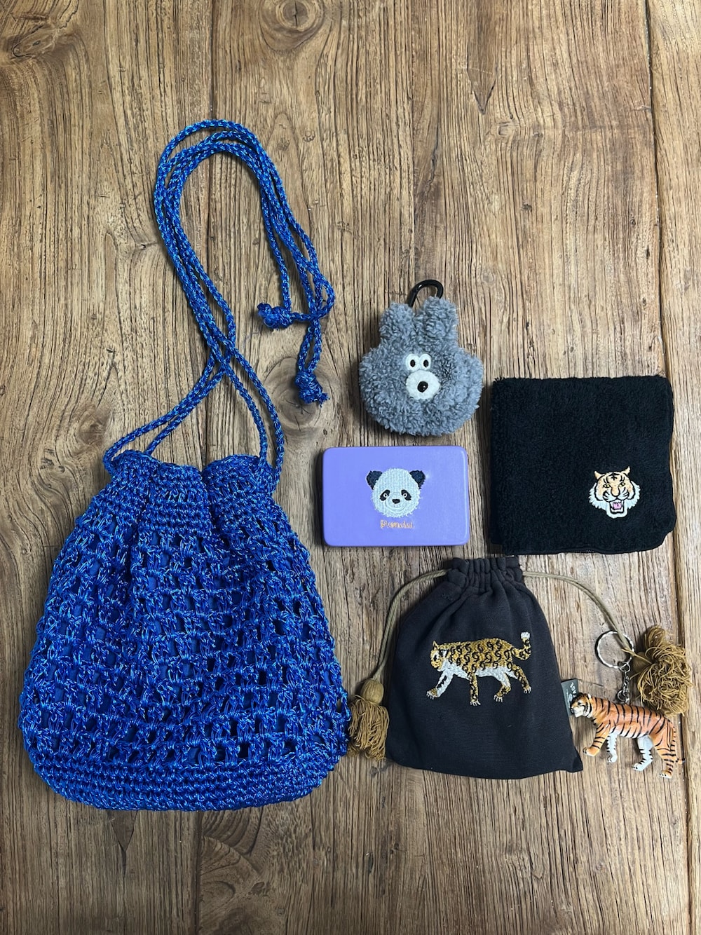 n m k( BIRTHDAY BAR 本部)のポーチ「アニマル刺繍巾着ポーチ S」を使ったコーディネート
