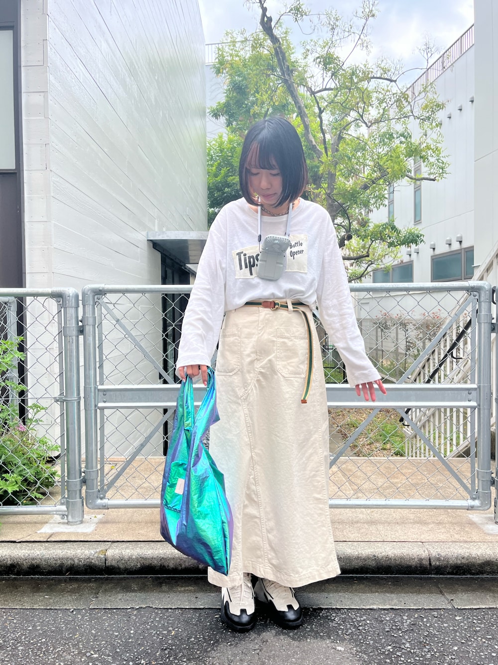 一気に夏模様ですね! 首から下げてるのは扇風機。 首からかけてハンズフリーで使えます。 立てることもできます◎ そしてスマホスタンド、モバイルバッテリーにもなる優れもの! 新色のメタリックエコバッグはオーロラで光のあたり方で見え方が変わってかわいい◎