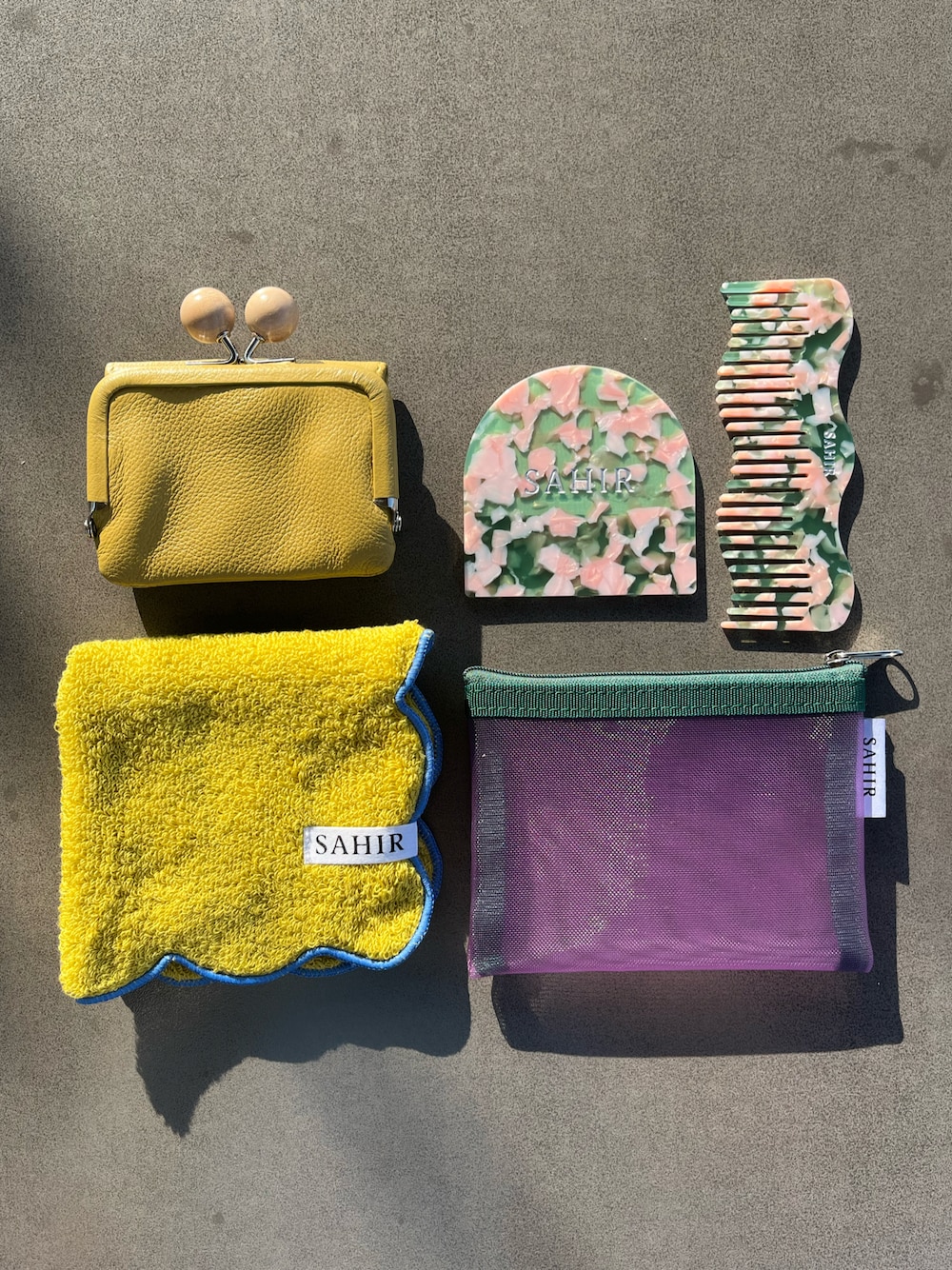 ライフスタイルブランド「SAHIR」から新商品続々出ています! アセチのコームとミラー、まだら模様が素敵。 スクロールするとミラー部分をご覧いただけるのですが、指紋がつかないよう手持ち部分が作られています。 カラフルだけど大人っぽい、バッグの中身のご提案です。